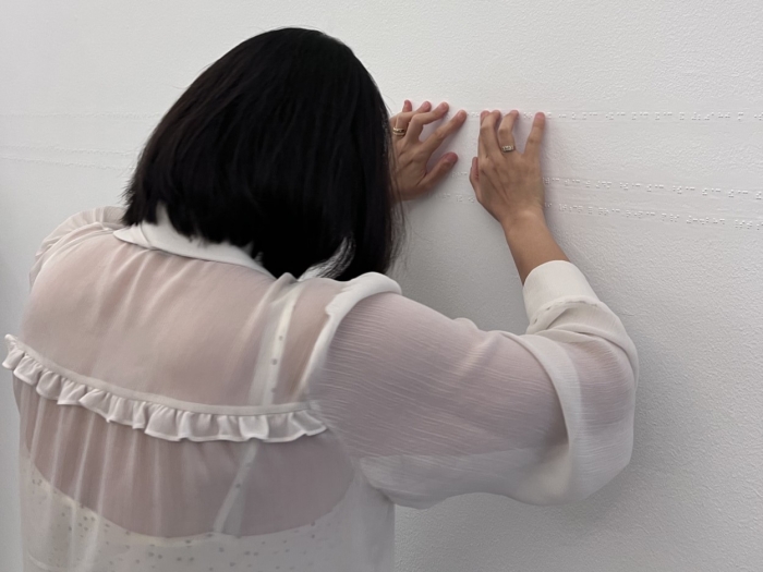 Lydia Ourahmane (1992, Saïda, Argélia) é uma artista conceptual. A sua prática inclui instalações, esculturas, imagens em movimento e obras sonoras pensadas para envolver público e comunidades, criando situações que transcendem as das paredes da instituição, enquanto negociam os termos dentro dela. Na Galeria Municipal irá apresentar uma nova versão da instalação Per Voce (2025), desenvolvida em colaboração com sua irmã Sarah Ourahmane, compositora e música. A obra consiste numa partitura composta a partir da arquitetura e da acústica da sala de exposição, para ser interpretada por cantores com deficiência visual.